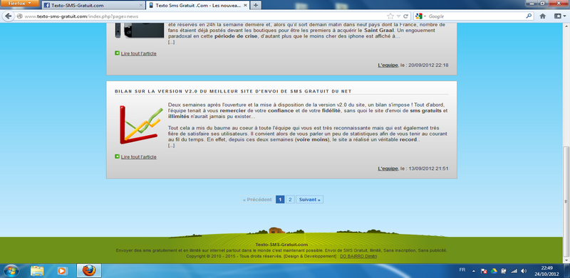 Depuis la création du site d'envoi de sms gratuit, un problème majeur ressortait sur la page de news. Le souci rencontré était que lorsque l'un ou l'une de nos rédactrices écrivait un nouvel article, cet article se voyait être affiché dans la page news, au-dessus des anciennes news et ainsi de suite. Pour ceux qui n'auraient toujours pas compris la subtilité, cela créait pour faire simple une page extrêmement longue et donc très désagréable pour l'utilisateur. Mais aujourd'hui ce système est révolu ! (houuura !) Désormais un système de pagination est disponible. Un système de pagination c'est quoi ? C'est une architecture permettant d'indexer de manière organisée des articles par page et donc de rendre la vue et la lecture plus agréable.